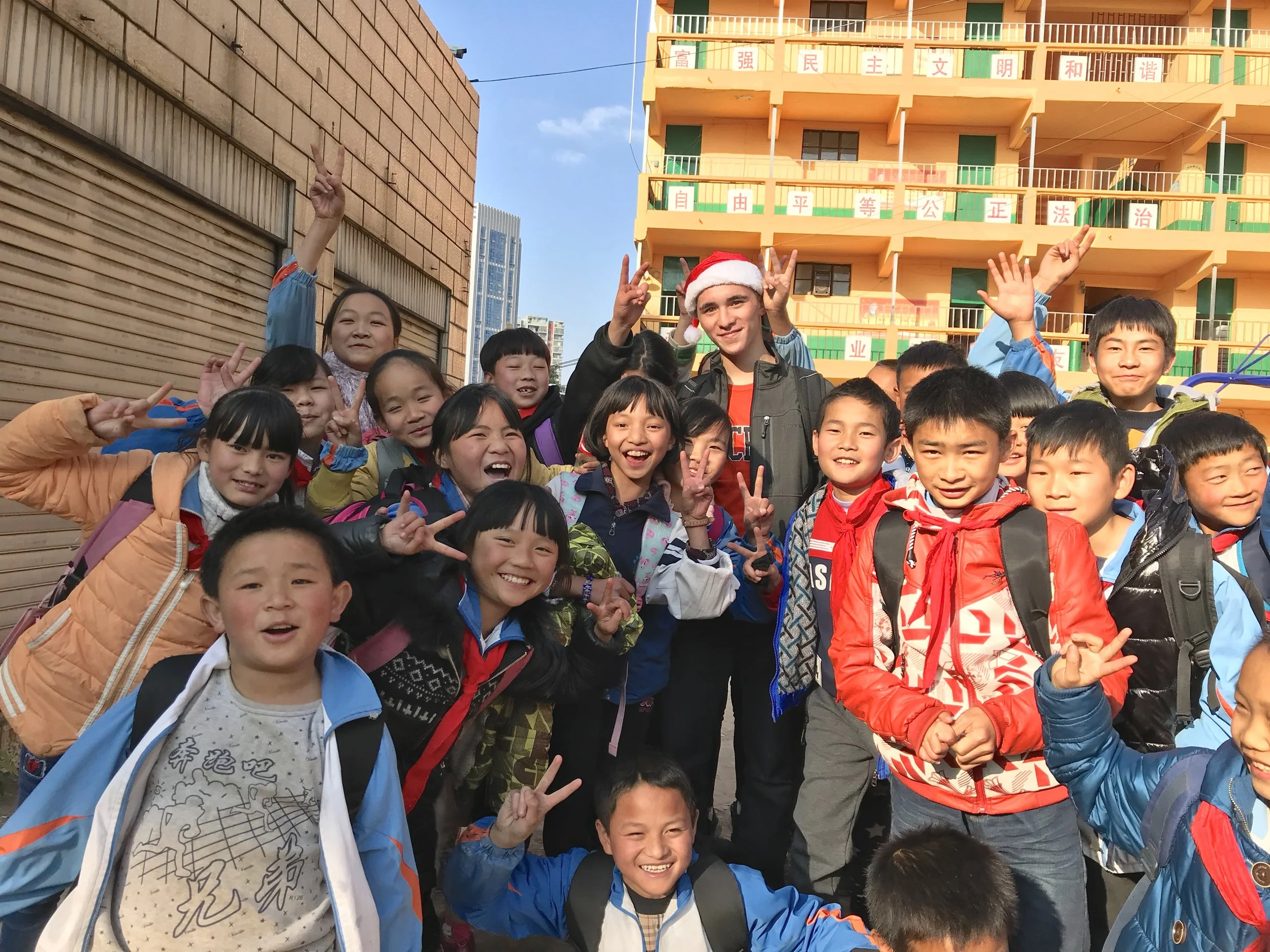 My 5th grade kiddos and I in Kunming, on a Friday at 4pm, after our Christmas lesson in 2017.